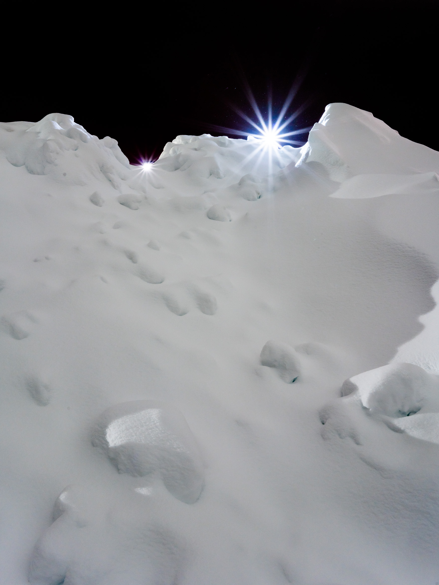 Rendered against dark skies in the stark light of Keith’s portable flash units, familiar sights of nature are transformed into something new or even revelatory—falling snow and swarming bugs are revealed as vast fields of light resembling Deep Field astronomical images; drooping flower stalks and ice-laden branches become anthropomorphic forms of shadow and color. Though rich in visual information, the images remain difficult to decipher—they flicker between the ordinary and the unknowable, and it is in this state of limbo that Keith’s images come to life.
